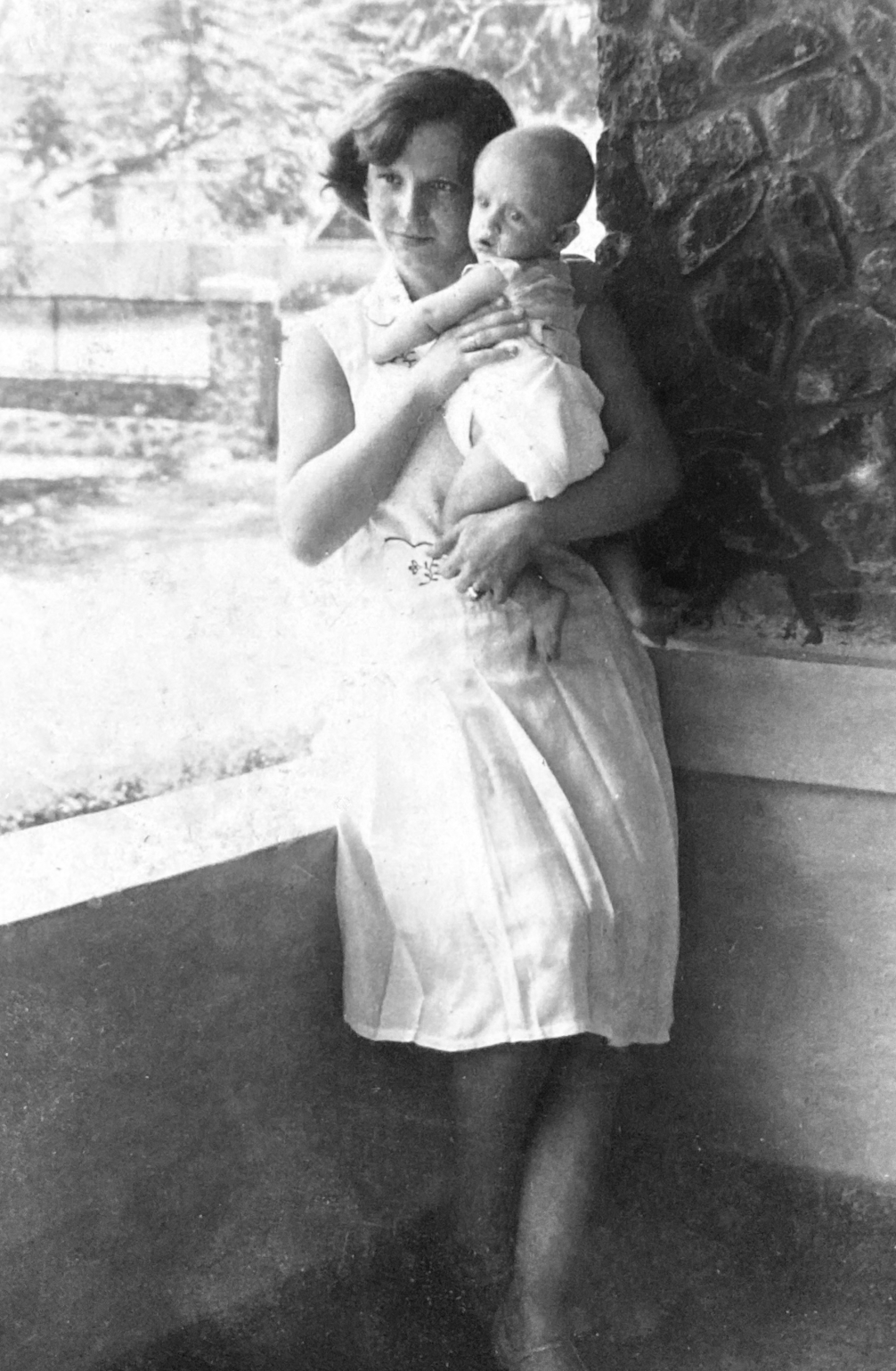 Moeder Corry Ruseler-Kloppert met François op de arm in 1931 in Kemantran Java. Familiearchief Kloppert.