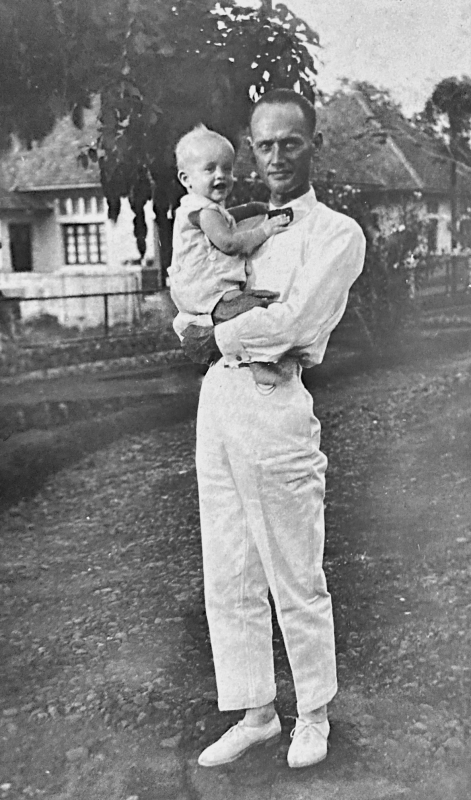 Vader Jan Kloppert met zoon François in zijn armen in 1931, Kemantran Java, Foto familiearchief Kloppert.