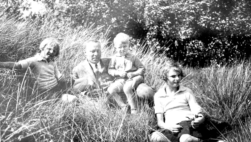Jan Hoogsma met zijn drie kinderen poseren in de duinen in 1925. Sjoerd is de jongste en zit op zijn knie. Foto familiearchief Kloppert.