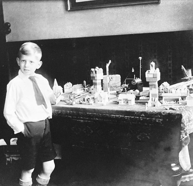 Sjoerd de ‘architect’ met zijn speelgoed op een tafel in de huiskamer van de Varremarkt nr. 5 in Zierikzee, in 1929. Foto familiearchief Kloppert.