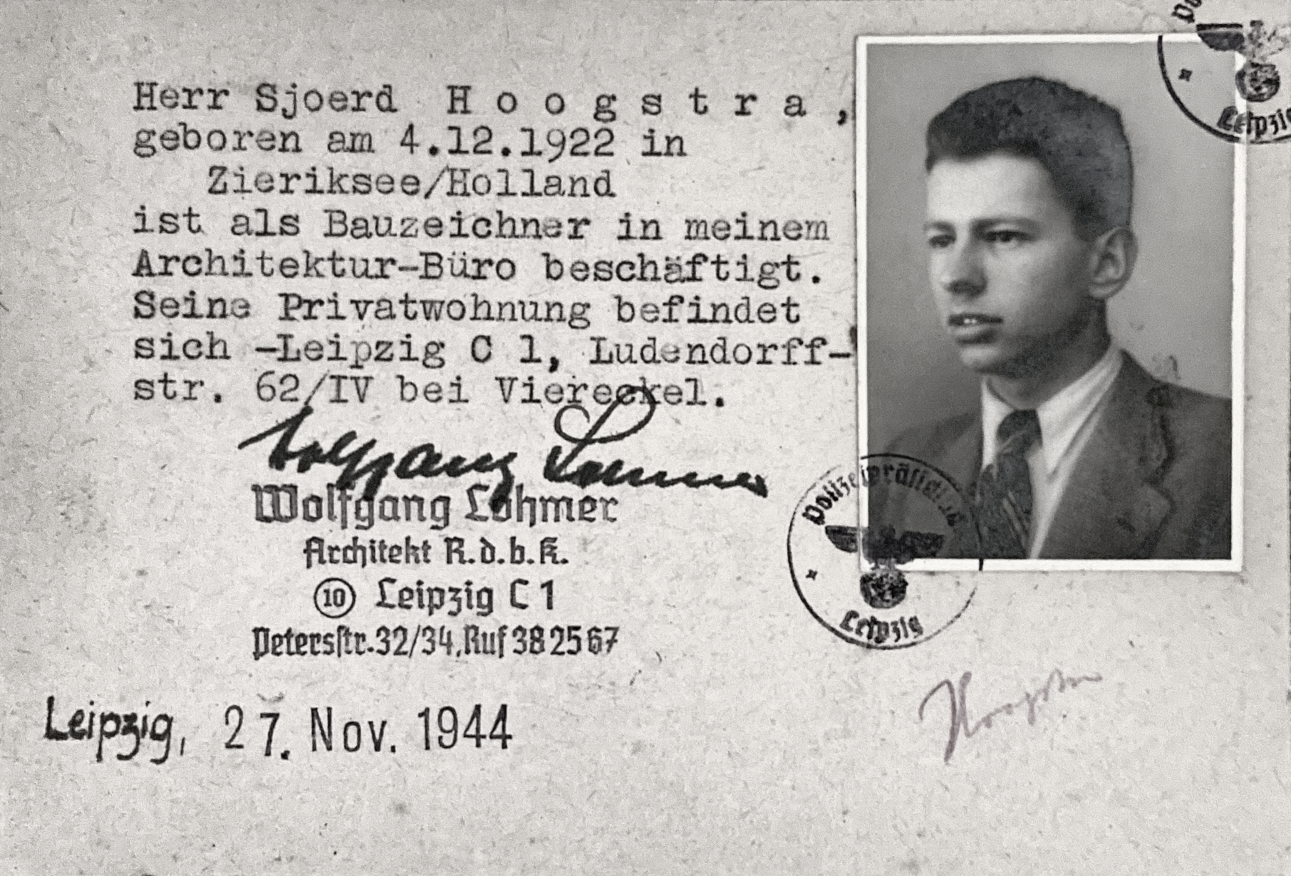 Pas van Sjoerd ondertekend op 27 november 1944 door Wolfgang Lohmer, architect in Leipzig. Foto familiearchief Kloppert